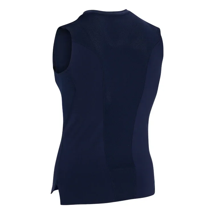 La camiseta de gimnasia Origins para hombre, de la marca de gimnasia TURN, está confeccionada en licra azul marino y malla técnica.